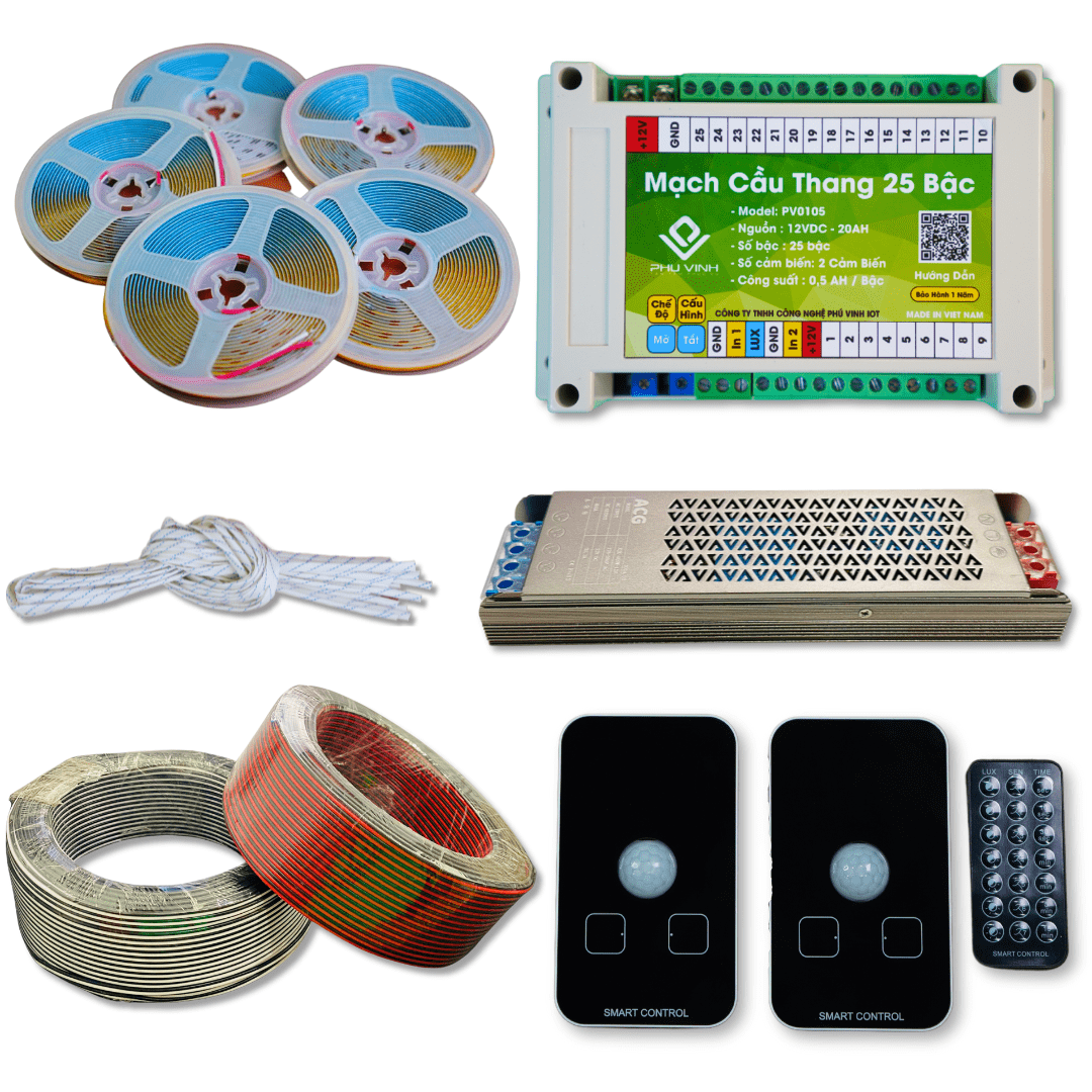 Phụ kiện và dây dẫn: Bộ sản phẩm đi kèm đầy đủ các phụ kiện, dây nối để bạn dễ dàng kết nối và lắp đặt hệ thống đèn LED cầu thang.