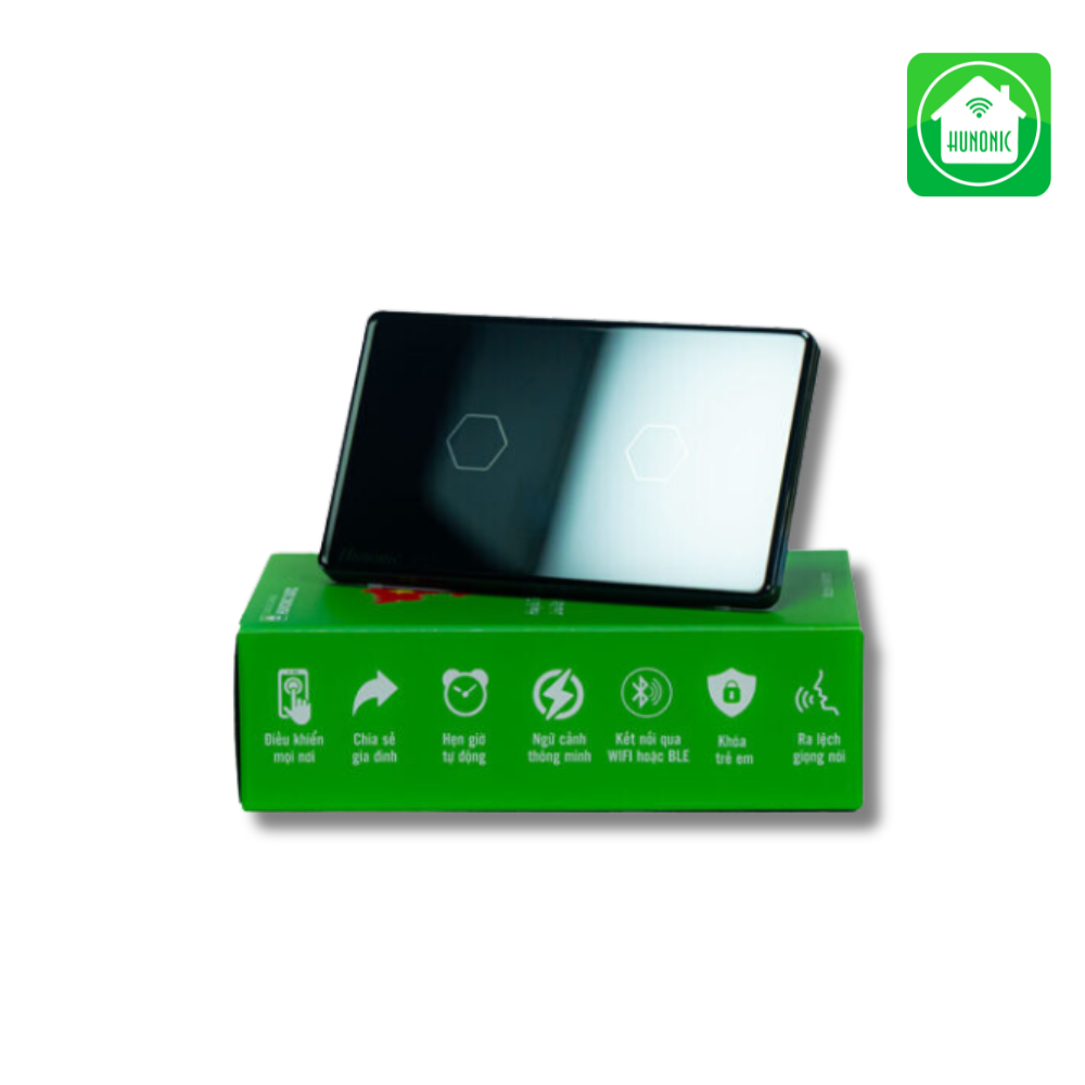 Công Tắc Cảm Ứng 2 Nút Wifi Hunonic Datic Màu Đen/Trắng