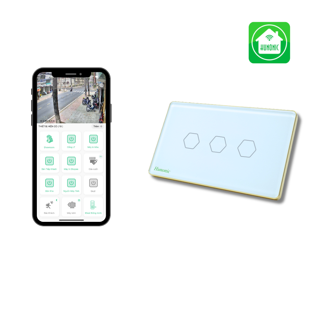 Giới Thiệu Công tắc cảm ứng Wifi Hunonic 3 Nút - Màu Trắng